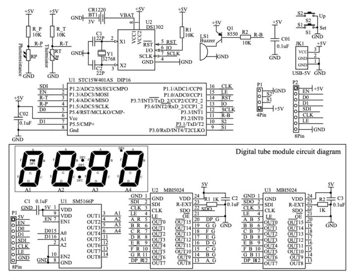 回路構成はリアルタイムクロックを使った時計として基本的なシンプル回路構成となっています。(回路&設定マニュアル)