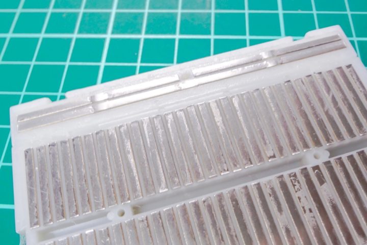 そしてブレッドボードの左右または上下左右(サイズにより変わってきます)には突起とヘコミがありブレッドボード同士を連結して使うことも出来ます。