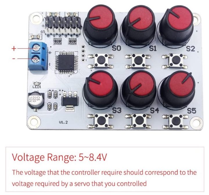 動作電圧は5.0〜8.4Vとなっており、接続するサーボモーターに対応した電圧を加える形となります。