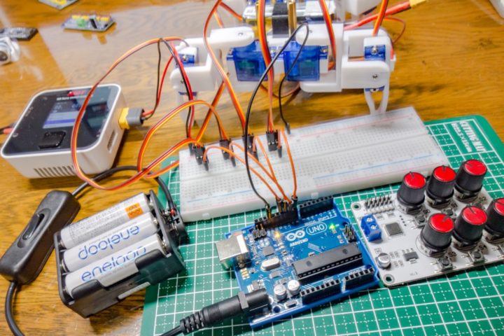 最近、電子工作用途で3Dプリンタを導入しこのような多関節ロボットを作ってみたのですが、動作チェック&確認に非常に時間をさかれサーボテスター導入に至りました。