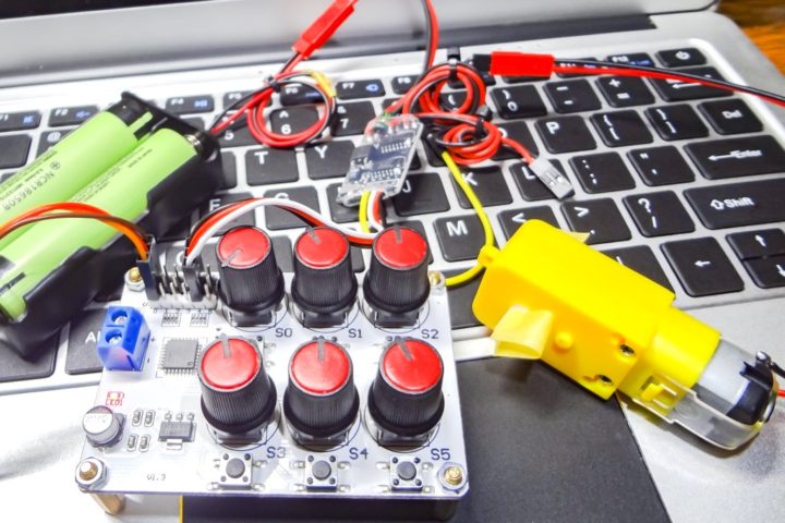 ポテンショメーターを回して任意の角度までサーボモーターを動かすことが出来るので動作チェックなどで使えます。