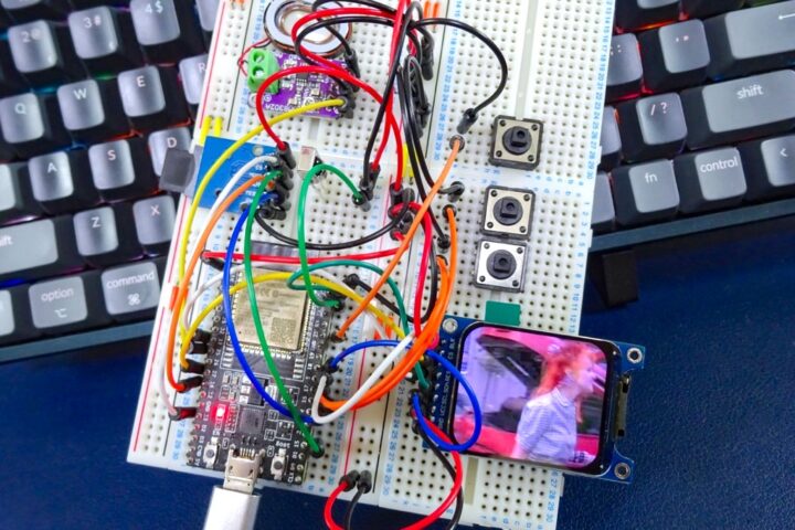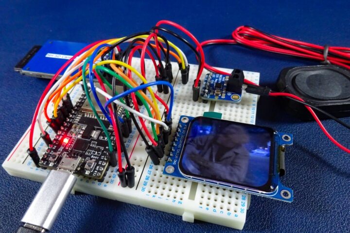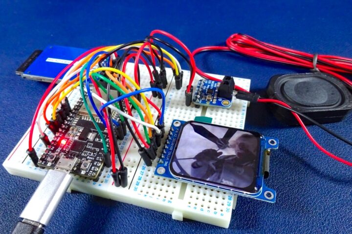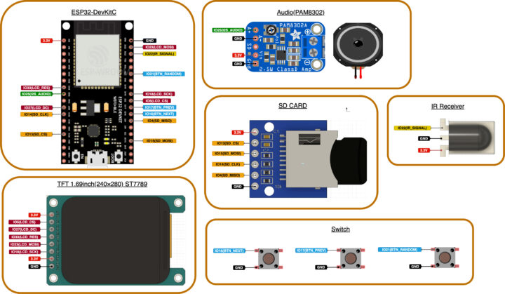 1.69インチ(240×280)TFTディスプレイ、SDカードモジュール、I2Sオーディオモジュール&スピーカーといったシンプルな構成で動かすことが出来ます。