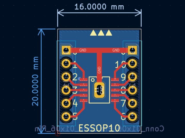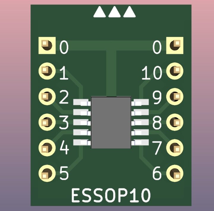 よく使うパッケージのピッチ変換基板はいくつかKiCadで設計しているのですが、まずESSOP10というパッケージのものを作ってみました。