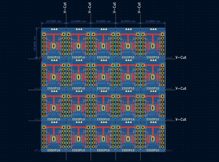 そのためなるべく最小サイズで作りたいところなんですが、単一基板のサイズがあまり小さすぎると特殊加工扱いとなり製造に結構なオプション料金が加算されてしまいます。
