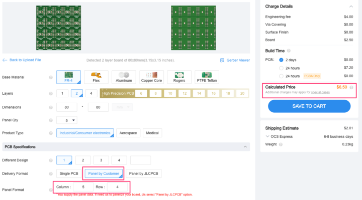 ちなみに、こちらで面付け基板データを用意した場合の価格は6.5ドルとなるようです。