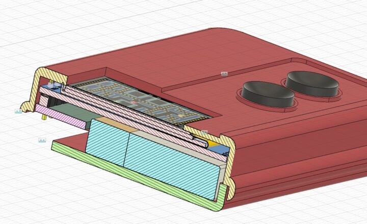 ケースとの干渉部分などを考慮しディスプレイやバッテリー、スピーカーといったパーツの配置をある程度正確に決めないとPCBの形状が作れないためKiCadでの基板設計に移れないということですね。