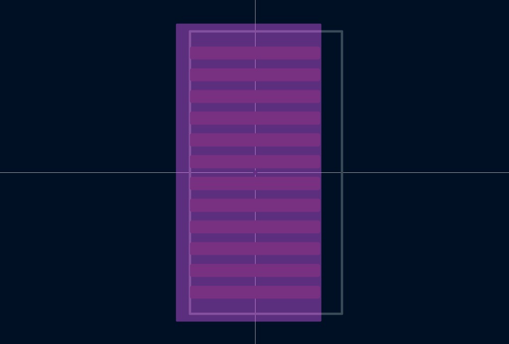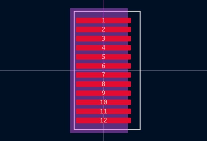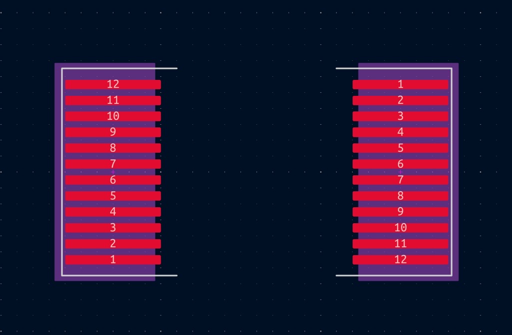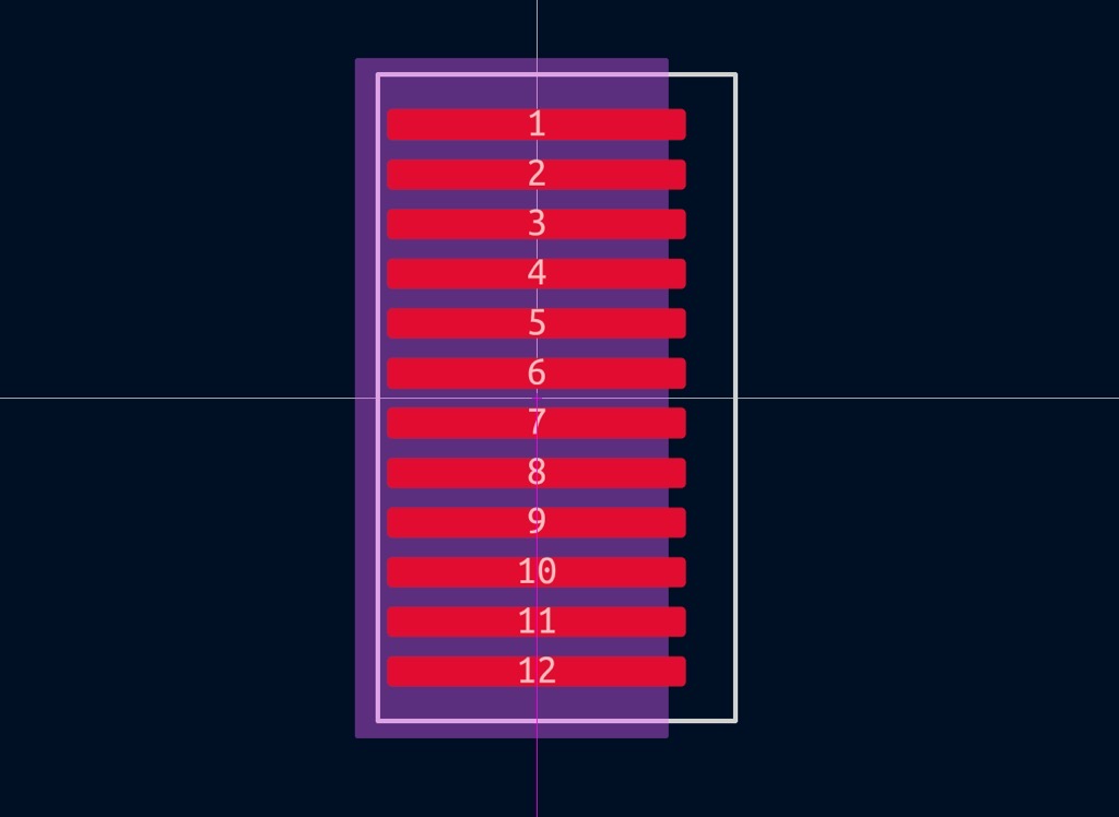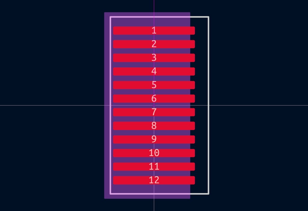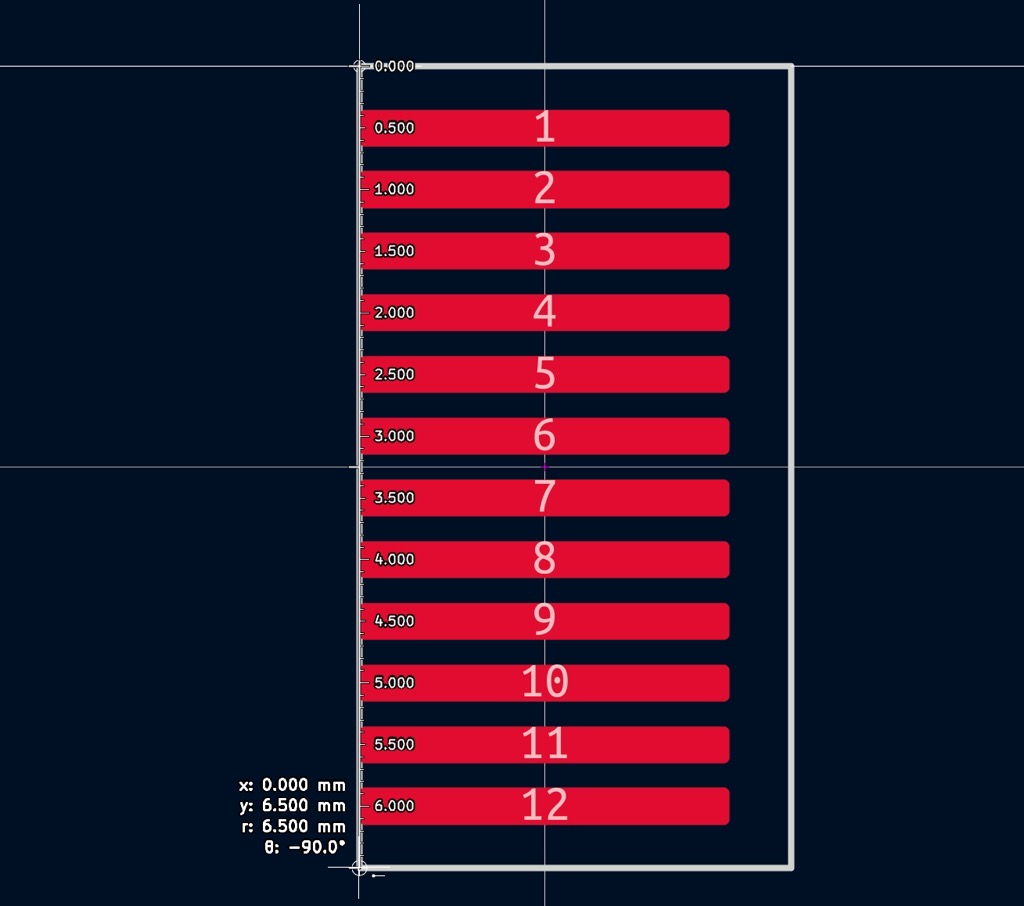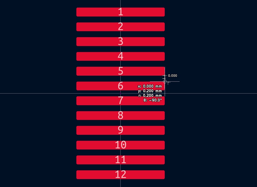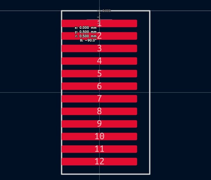作成したパッドを左右に配置し、Edge.Cutsを接続して外形を作成します。