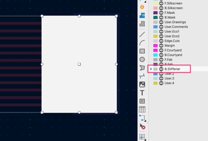 今回は裏面側に配置するため、レイヤー名を[B.Stiffener]としています。