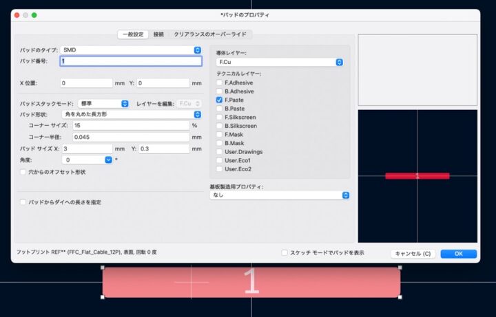 汎用ライブラリにフットプリントがあまり用意されていないため、今後自由に設計出来るようにベースとなるフットプリントを自作しておくことにしました。