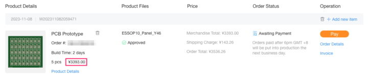 通常基板の発注の時と同様に面付け基板でも発注時に面付けオプションを付けた段階で料金等の確認を行えますが、エンジニアのチェック後追加料金が加算される場合があるようです。