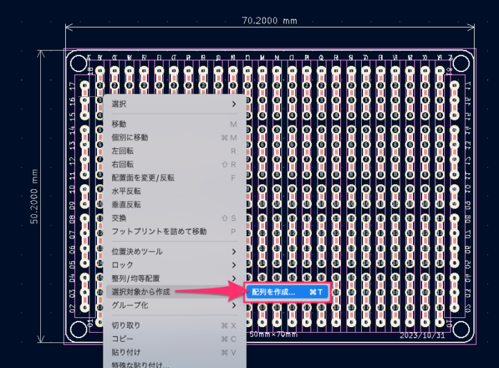 この基板では70.2mm×50.2mmのサイズなのが確認出来ます。