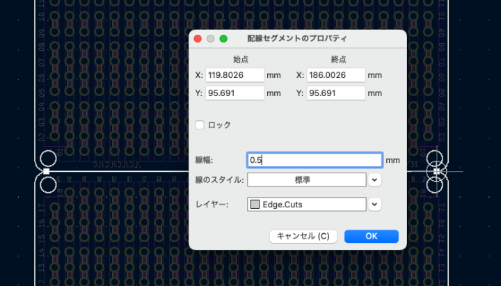 Fusion360で作成したDXFファイルを基板外形線に読み込んで使ったのですが、その関係か正確には70.2mm×50.2mmとなってしまっていました。