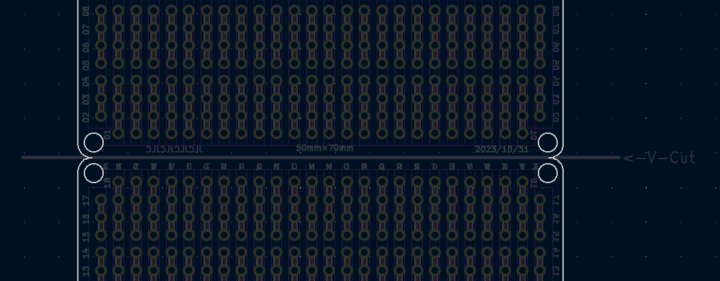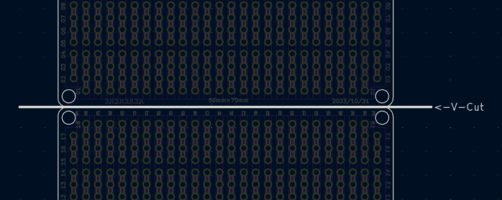 JLCPCBで今回始めて面付け基板の発注を行ってみたので、Vカットによる面付け基板データの作成方法や発注時の面付けオプション項目について見ていきたいと思います。