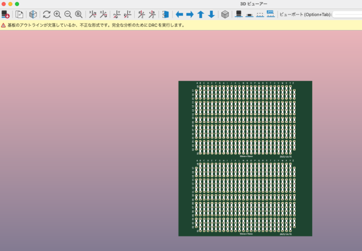 基板外形線が複数本重なっている状態なのでKiCadでは1つのループに収まっていないことからプレビューではエラーが出てしまいますが、面付けデータとしてはこの状態のものを発注して特に問題になることはなく、無事面付け基板を製造する事が出来ました。