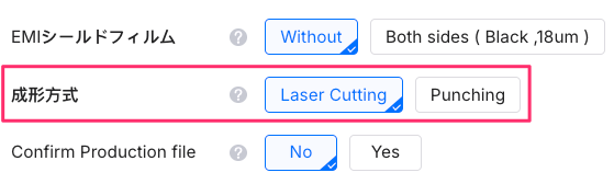 通常のFR-4といったリジッド基板の場合と異なり、FPCはVカットが使えず、金型(抜き)やレーザーでカットするようです。