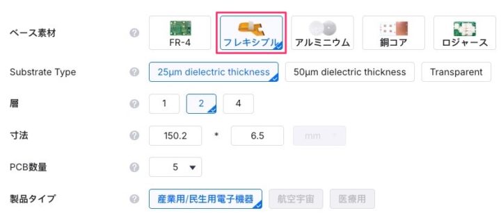 単体基板としての発注であれば、通常のリジッド基板と大きく変わる点はありませんが…