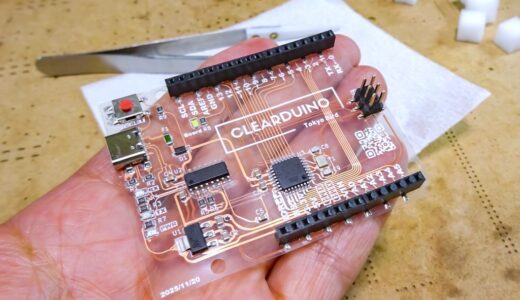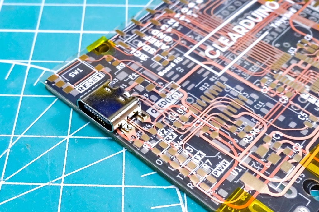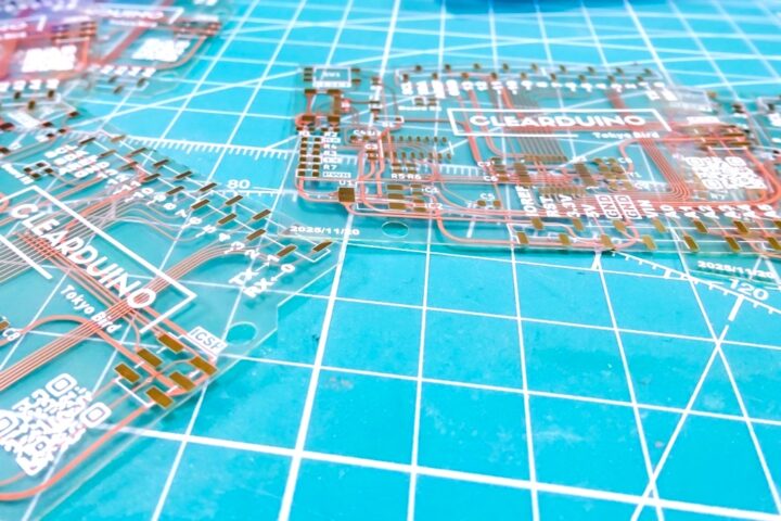 銅箔やシルク印刷もすべて透けて見えるため、見た目のインパクトはかなり強く、まさに「見せる基板」といった印象です。