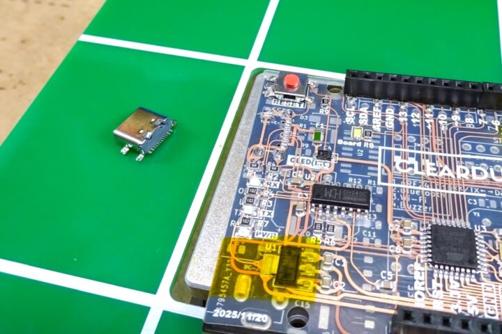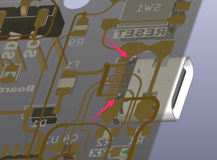 Type-Cコネクタではよくあることで、通常のFR-4基板であればこうしたブリッジ修正は慣れればそれほど難しいものではありません。