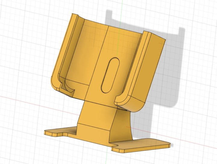 プローブ差し込み口が本体正面や横位置にある機種ならスタンドに立て掛けて使うことは簡単なんですが、KM601ではプローブ差し込み口が下位置にあるため既存のスタンドを使うことが出来ないことからCADで設計して3Dプリンタで作ってみました。