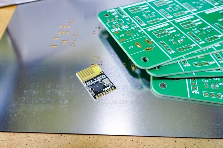 今回はリフローでのパーツ実装を想定していたので、メタルマスク(ステンシル)も一緒に発注しました。