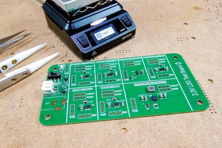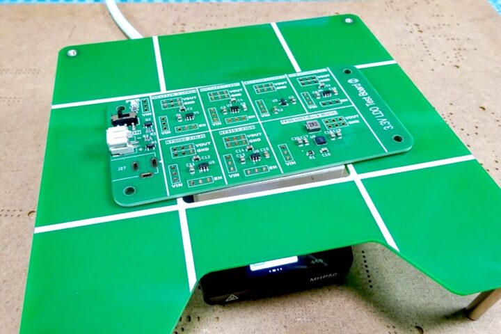 よく使う(入手性が良いものなど)LDOチップを複数ピックアップして1枚のボードにまとめ、個別チップの特性を調べたり、また製作しようと考えているテスト回路(実回路)に組み込んで確認が出来るというコンセプトで作ったボードとなり、動作確認用としても活用できる便利なテスト基板でした。