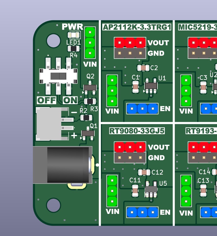 そこで今回は第2弾として前回とは違うラインナップのLDOチップを選び、同じコンセプトであらたなボードを製作してみることにしました!
