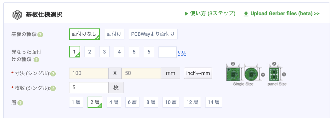 以上、オプションおよびメタルマスクを選択し基板を発注しました。