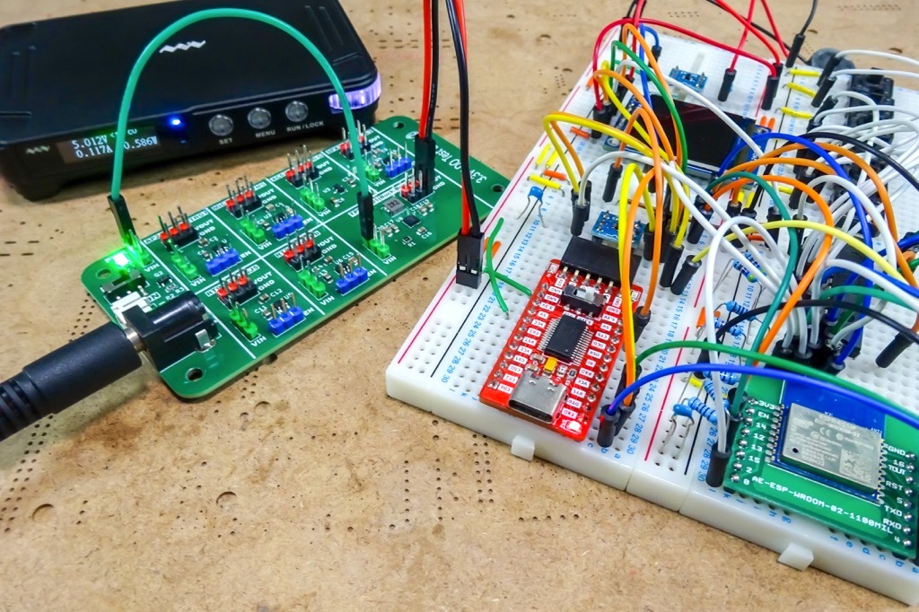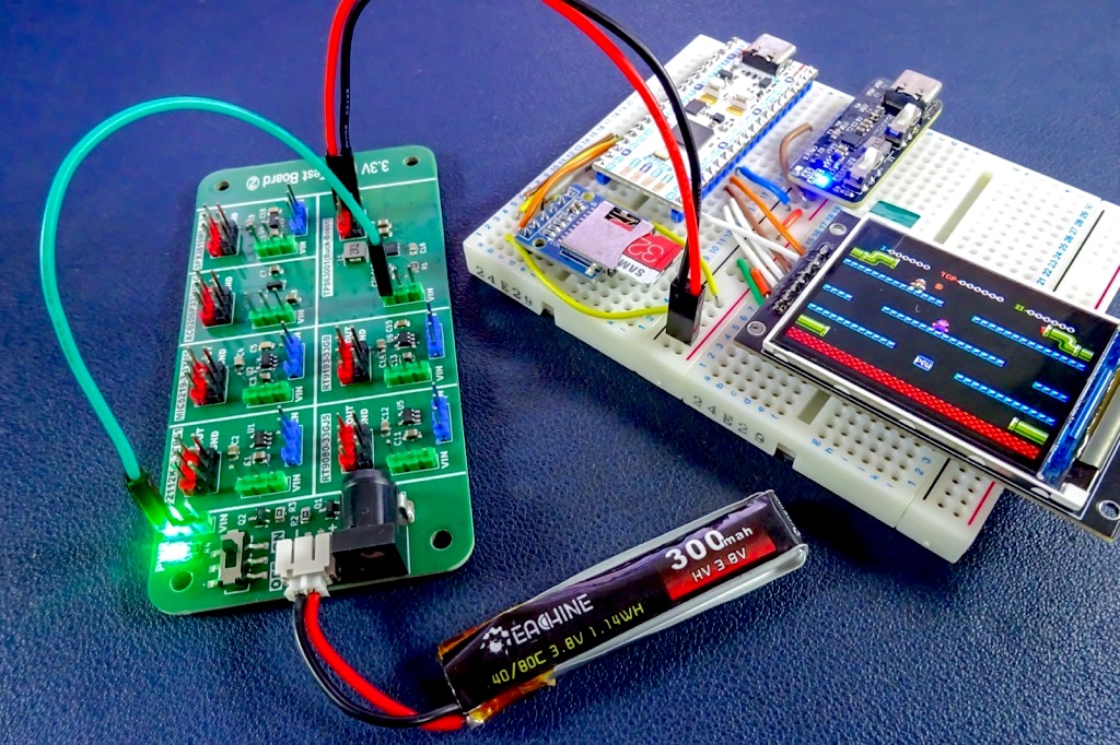 ピッチ変換基板を使いこれまで個別でテストしていたものを、1枚のボードにスッキリとまとめて使いやすくした感じです!