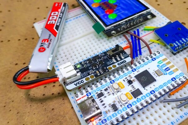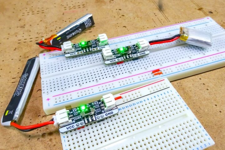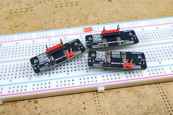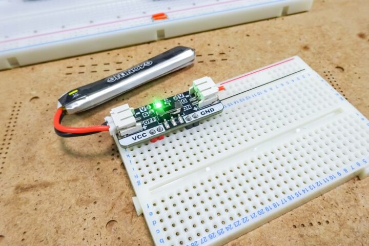 このボードはブレッドボードの電源レーンに直接差し込み電源供給を行うこともでき、バッテリーの接触不良なども起きにくくテスト回路や動作確認をする際にとても重宝しています。