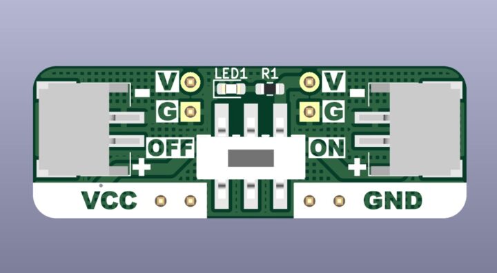 またブレッドボード上に組んだ他の回路の邪魔になりにくいように極力コンパクトなサイズに設計しており、ブレッドボードの電源レーンに直接差し込み電源供給を行うだけでなく、任意の位置に配置するなど柔軟な使い方が出来るようにしています。