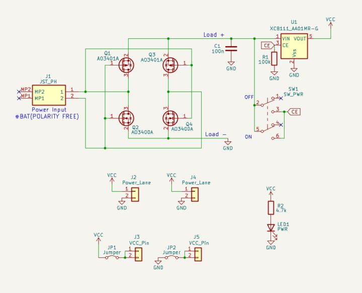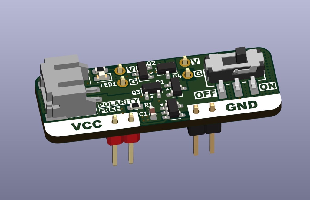 基本的なボードコンセプトは変えていませんが、今回のV1.2ボードでは、入力側のバッテリー極性に関係なく、出力側の極性が常に一定となる構成へとさらに改良を加えてみました。