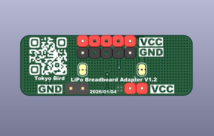 ブレッドボード上で試作回路を組む際にリポバッテリーを扱う場合、何かしらピッチ変換基板が必要になることから、以前コンパクトなブレッドボード用DIP化基板(V1.0)を製作しました。