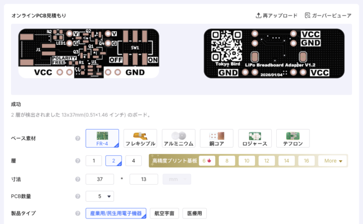 今回PCBAサービスを利用しましたが、自身でパーツ実装まで行えば安価に製作出来るので参考になればと思います。