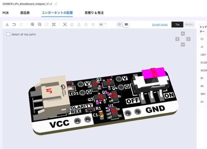 BOMとCPLファイルもアップロードしパーツの選択や配置の確認等を行います。