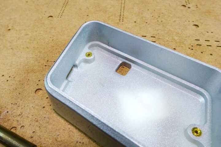 ケースにM2×5mm(OD3.5mm)のインサートナットを圧入します。(2ヶ所)