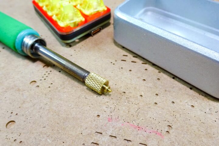 インサートナットの圧入には、このようなインサートナット専用のチップ(コテ先)があると便利です。(下写真のものはT12用です)