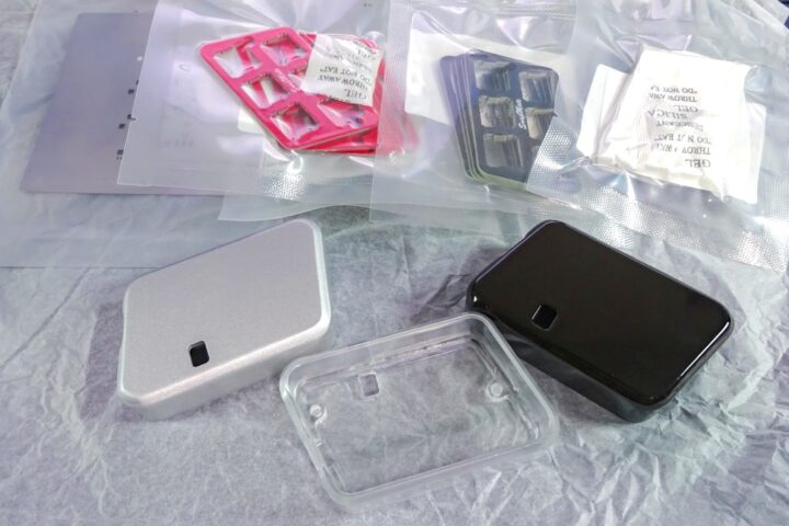 小さなケースとなりJLC3DPでは非常にお安く製造出来るので、スプレー塗装した光沢ブラックと光沢グレー、そして透明ケースの3パターン製作してみました。