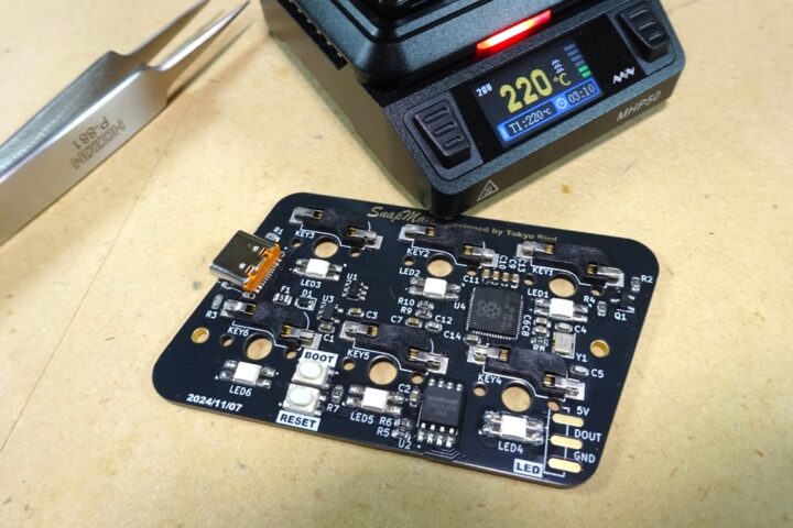 そして今回はオンボードRP2040搭載のミニマクロパッド『SnapMate』を製作したのでご紹介したいと思います。