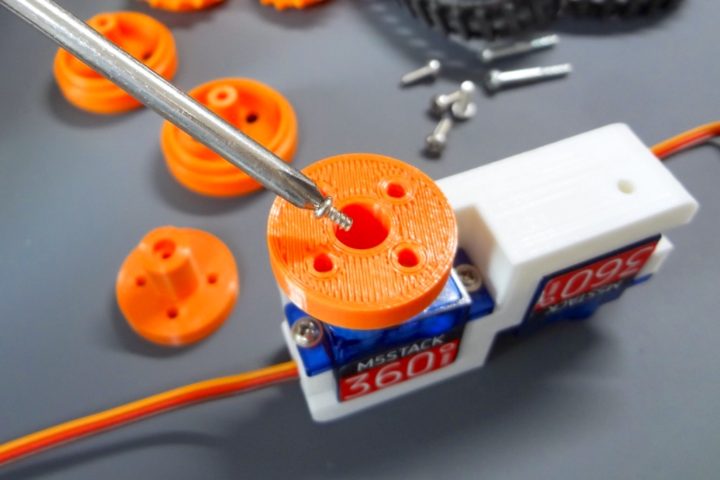 サーボモーターにホイール固定用パーツを取り付ける際、とてもきつく、
