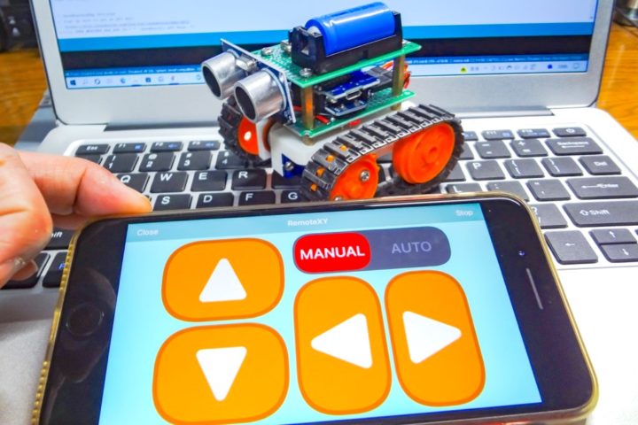 [MANUAL]を選択してラジコンとして動かしたり、[AUTO]でセンサーを使った自動運転モードで動かすことが出来ます。