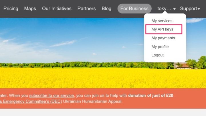 ユーザー登録完了後、サイトにログインし[My API Keys]のページに行くとAPIキーが表示されます。