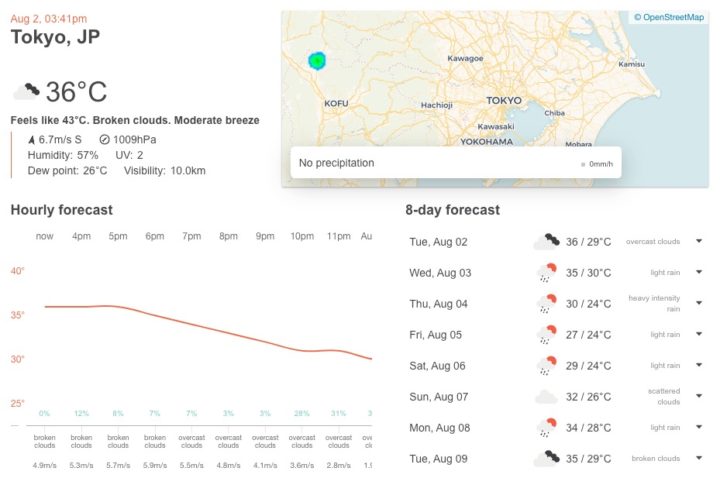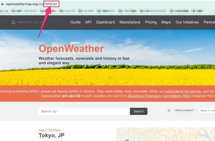 OpenWeatherは全世界の気温や降水確率・湿度や気圧といった気象データを取得できるサービスです。