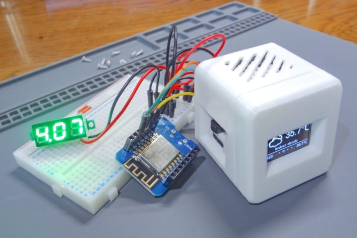 小型なESP8266開発ボードとなるWeMos D1 miniを使いWi-Fi経由でお天気情報を取得して表示させるMini Weather Station(ウェザーステーション)を作ってみました。