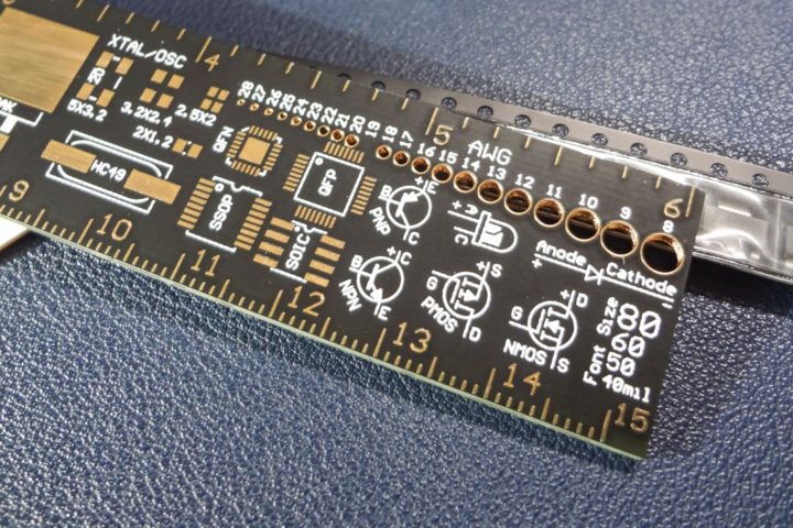 オリジナル基板の設計、特に表面実装パーツを使った基板設計の際に手元に置いておくと役立つPCB定規、PCB Rulerです。