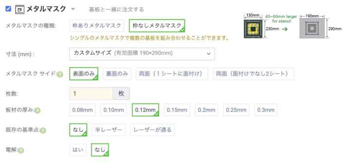 またメタルマスク(ステンシル)も基板と一緒に発注しました。