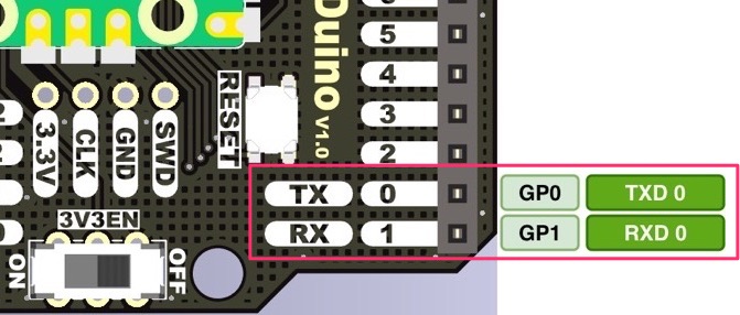 本ボードでは、Arduino Unoの使い方に合わせるため、UART 0のTX / RXをD1 / D0の位置に割り当てました。