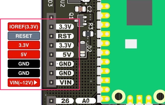 本ボードではPicoを使用しているため、IOREFピンの電圧は3.3Vとしています。