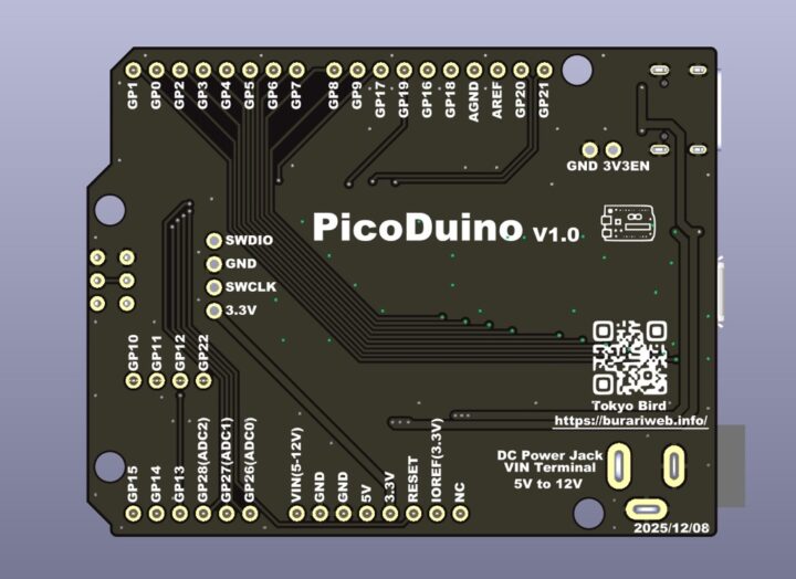 今回、Raspberry Pi PicoやPico 2をArduino Uno互換の形で使えるベースボード『PicoDuino』を製作してみました。