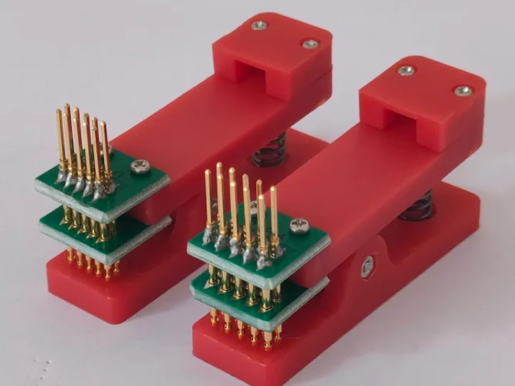 クランプタイプのように挟み込むものやプローブ形状のものは比較的安価で売られているので大抵の用途ではこれらを使えば対応できますが、限られた基板サイズに書き込みパッドを用意したい場合などは自作出来るようにしておけば今後便利に使えそうです。