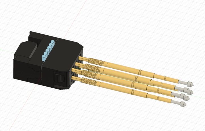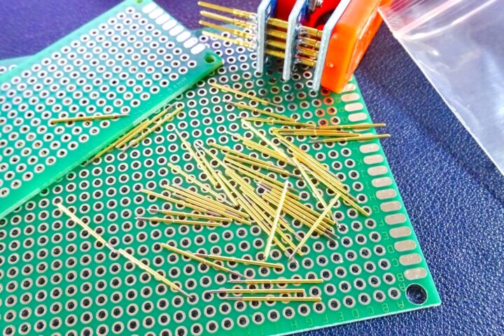 また使用したポゴピンも直径0.5mmとかなり小さく手はんだでの実装だと、これはかなり難しいと思います。